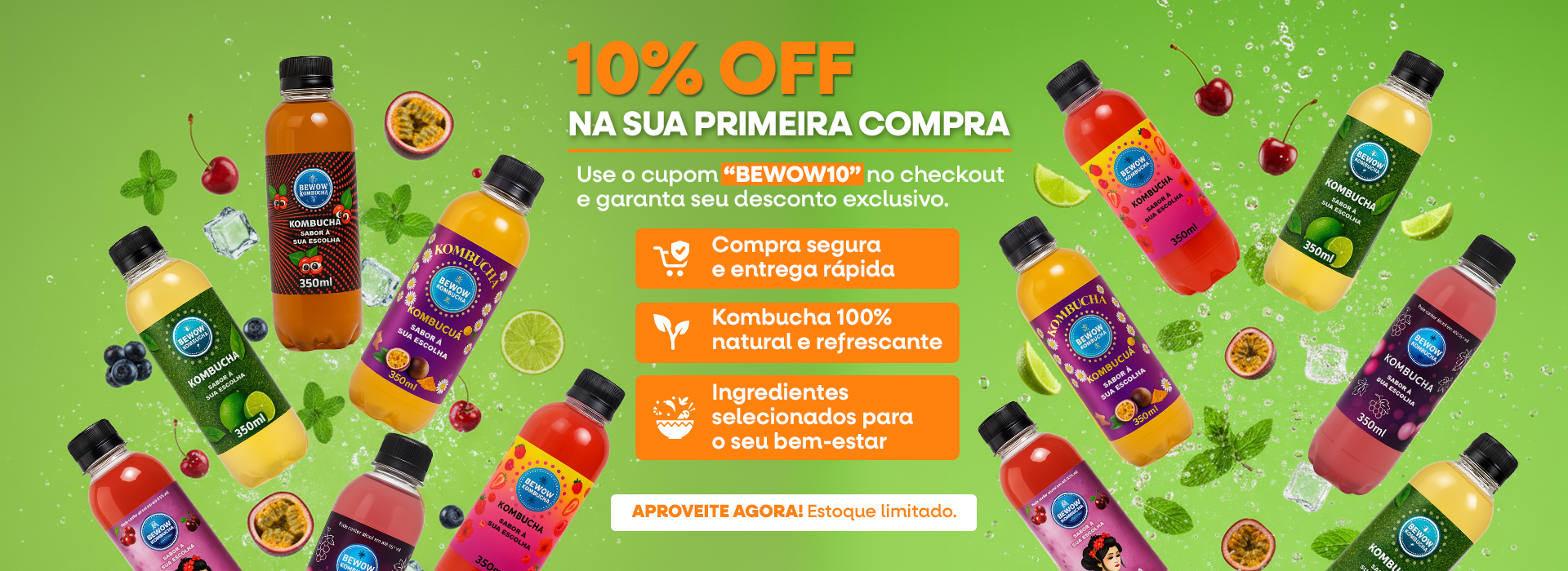 A Kombucha Bewow é muito mais do que uma bebida, é um estilo de vida. Fermentada de forma artesanal com ingredientes 100% naturais, ela é levemente frisante, refrescante e surpreende no sabor. Rica em probióticos, enzimas e antioxidantes, é a escolha perfeita para quem busca mais energia, equilíbrio e bem-estar todos os dias.